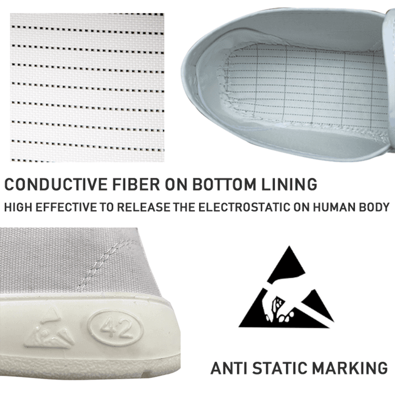 هنگام راه رفتن در یک اتاق تمیز ، کفش های ضد استاتیک می توانند به طور موثری گرد و غبار تولید شده توسط کف کفش را سرکوب کرده و گسترش گرد و غبار را در محیط تمیز کاهش دهند. این امر به حفظ نظافت اتاق تمیز و بهبود سطح پاکیزگی روند تولید کمک می کند. این امر به ویژه برای مکانهایی مانند کارخانه های دارویی ، کارخانه های مواد غذایی و کارخانه های الکترونیک مناسب است که نیاز به کنترل دقیق پاکیزگی محیط زیست دارند.